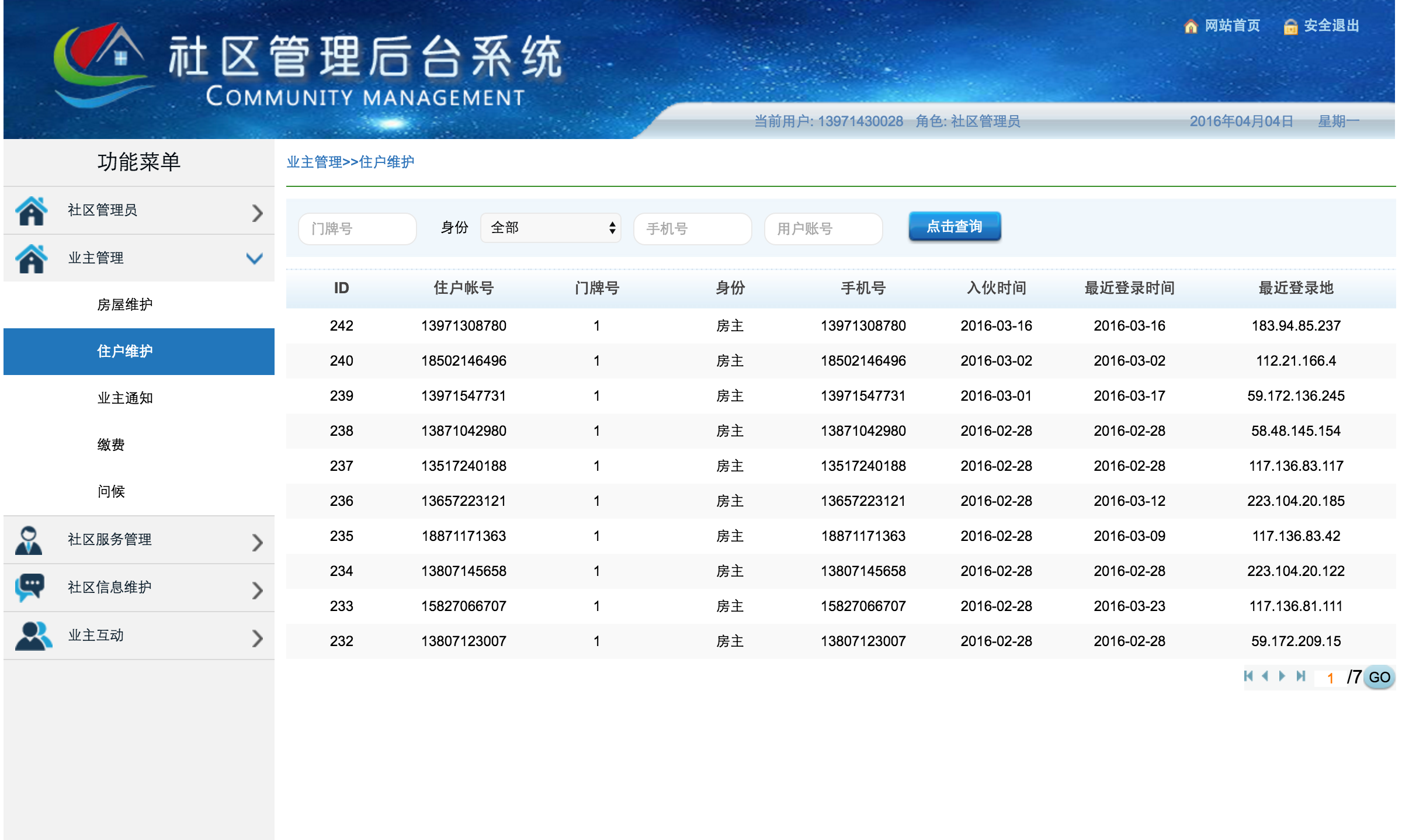 社区app后台管理系统